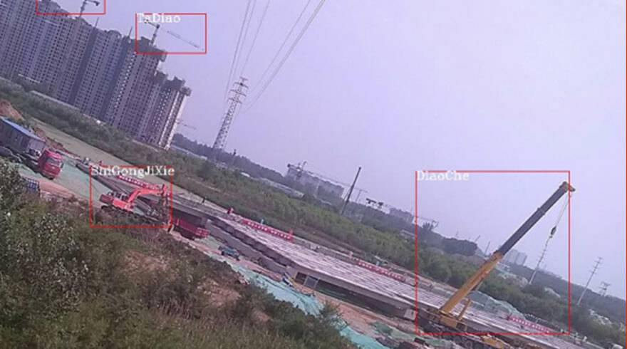 可自动识别施工机械、吊车、挖掘机、烟雾、山火、打桩机等隐患